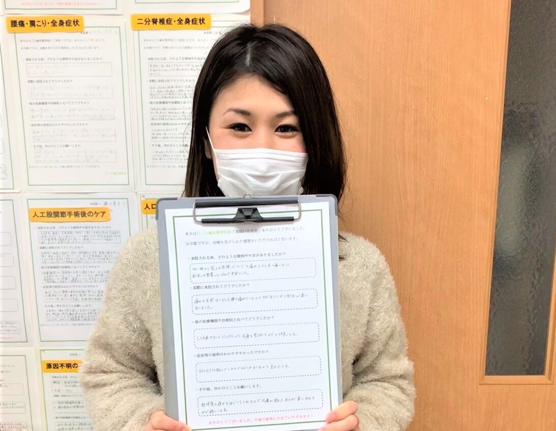 施術後も1回目で驚くほど楽になり嬉しかったのと改善する希望が持てたことも非常に大きかったです!