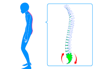 骨盤の位置が重要となり、後ろに傾いている状態が猫背・巻き肩の原因になります。
