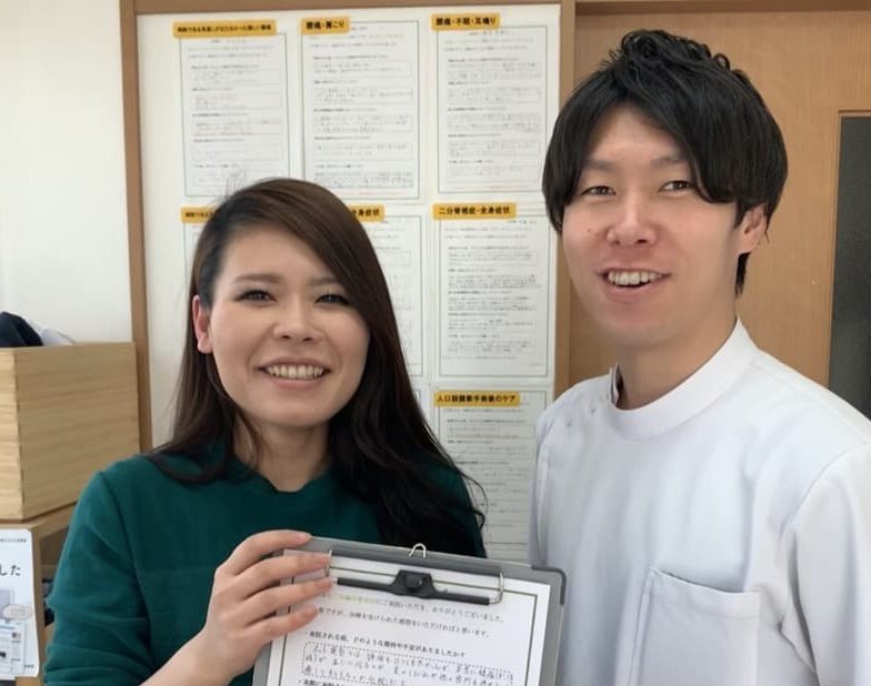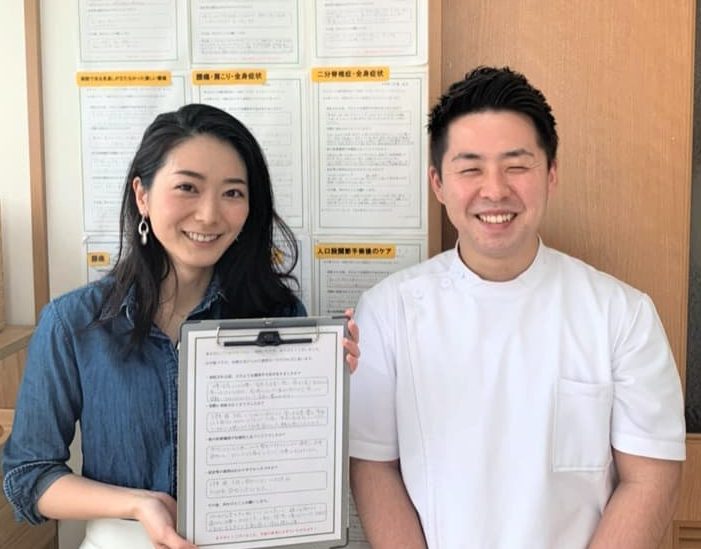 施術が終わった後は背が高くなった感じもあり猫背や姿勢が良くなっていました。自宅でのトレーニングとストレッチ体操を教えてもらい、それでも忘れないようにと動画も頂き良かったです。